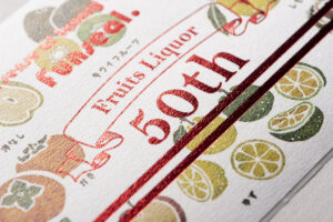 箔押しに使う素材によって、イメージを変えることができます。一般的には金や銀の素材を使うことが多いですが、ホログラムや透明箔を使うケースや、インクの色ではなく「顔料箔(がんりょうはく)」という絵具に近い箔を使って、あえて黒や赤、青などを箔押しするパターンもあります。